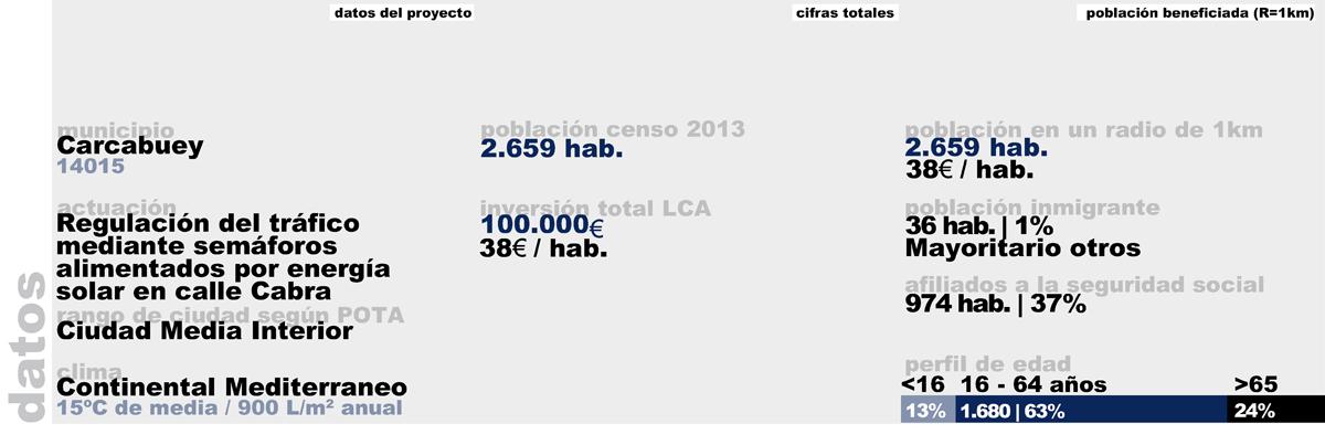 La travesía urbana entre las calles Cabra y Ancha, situadas en el extremo norte de la población de Carcabuey, soporta una gran carga de tráfico rodado, incluidos autobuses interurbanos, escolares, vehículos pesados y agrícolas que circulan en doble sentido junto con los viandantes que no disponen de acerado o resguardo alguno.