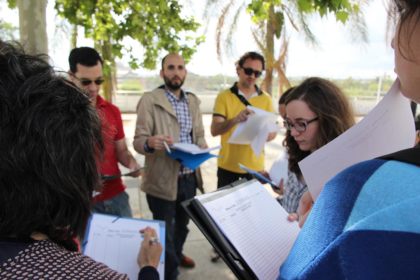 Hemos tratado de testar algunos principios enunciados en el proyecto, a priori teóricos, asumiendo el papel de meros usuarios del espacio público, formando parte activa en el desarrollo de acciones programadas por otros agentes. Así, hemos participado en 3 fiestas de mapeo colectivo -como voluntarios / organizadores / asesores-, 2 convocatorias de Jane’s Walk -organizadores / promotores-, 1 seminario de transferencia entre grupos de investigación -organizadores-, 1 paquete de actividades en el marco del XI Festival de cine europeo de Sevilla –organizadores-, 1 inauguración de exposición –asistentes-, 1 presentación de documental –organizadores-, 1 desconferencia de convocatoria nacional –organizadores-