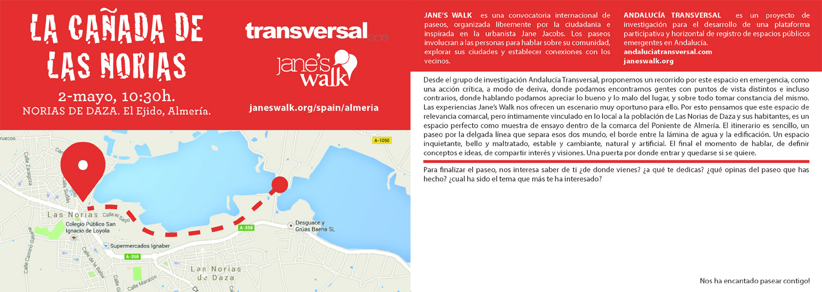 Jane's Walk Poniente de Almería 2015 | Organizadores | La Cañada de las Norias. El Ejido (Almería) | Paseos ciudadanos y ciudadanas por la ciudad | Andalucía Transversal